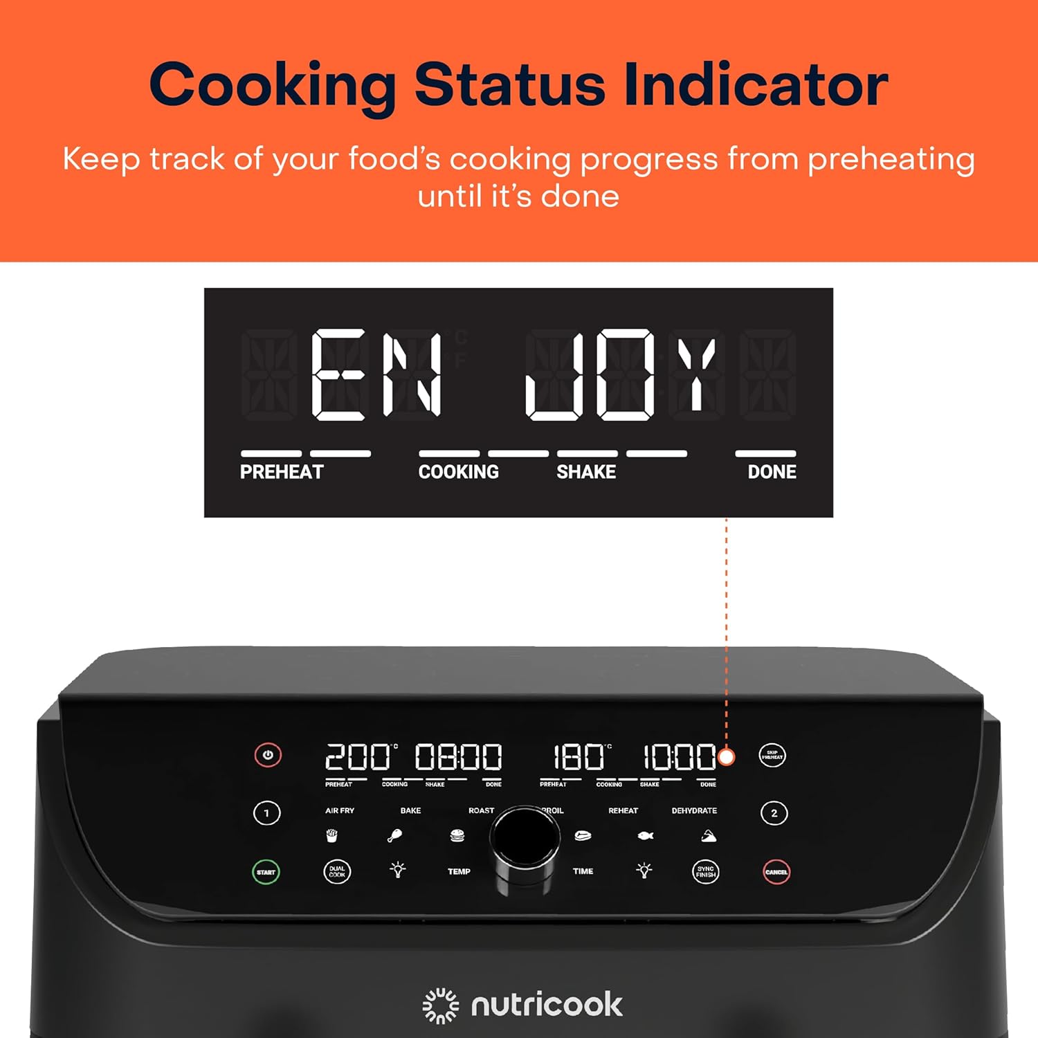 - COOKING STATUS INDICATORS - Keep track of your food’s cooking progress from Preheating until it’s ready. Includes Shake Reminder letting you know when to shake or flip food for even cooking.