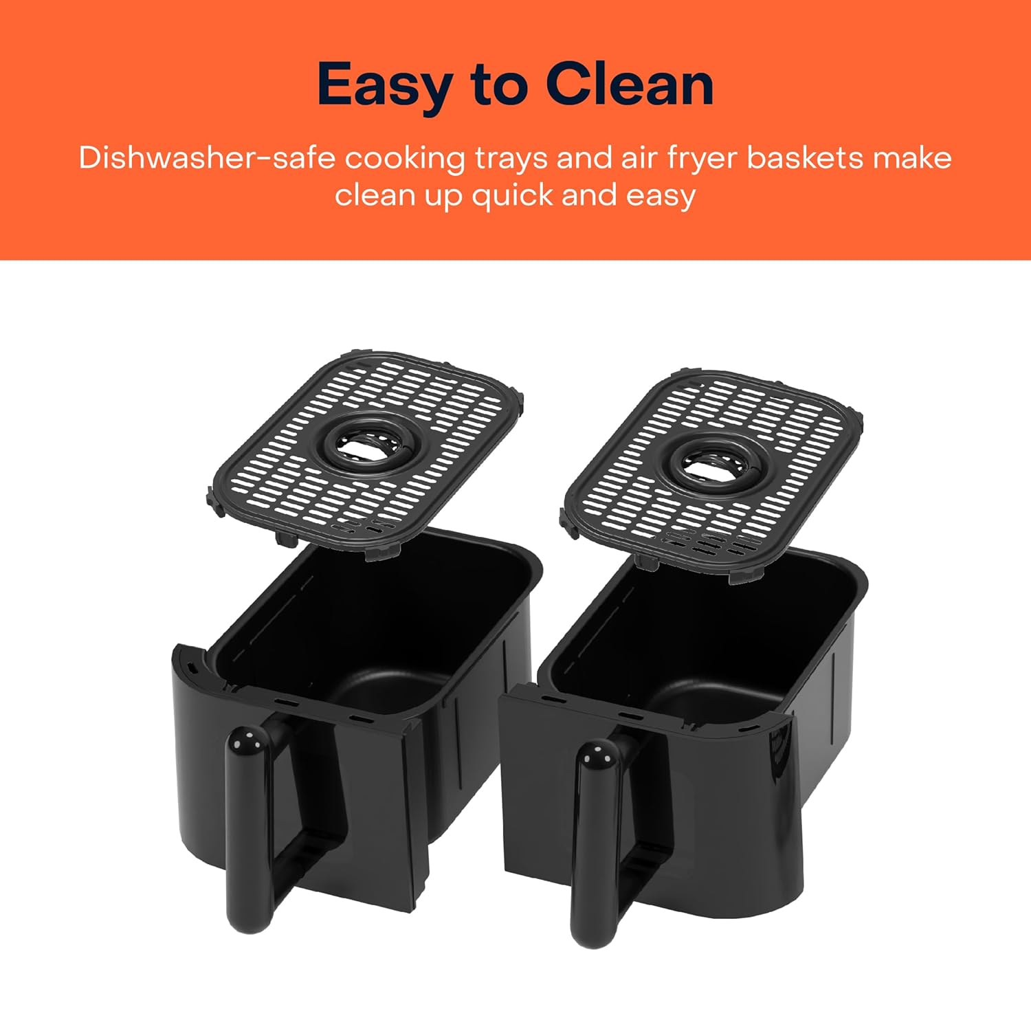 - EASY TO CLEAN: PFOA/BPA-free, non stick air fryer basket and cooking tray are dishwasher-safe making clean up quick and easy.