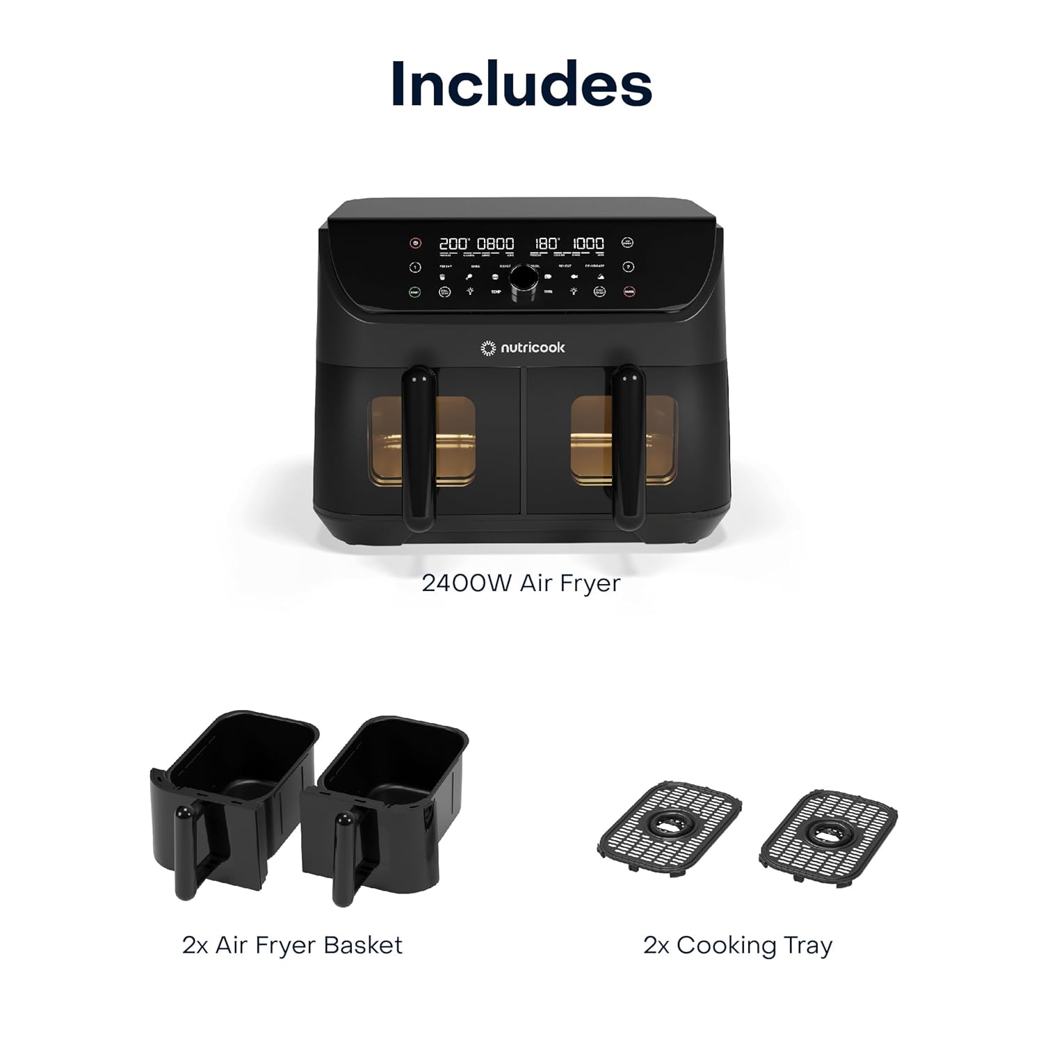 - WHAT’S INCLUDED: 2400W Air Fryer, Air Fryer Basket, 2x Cooking Trays, User Guide